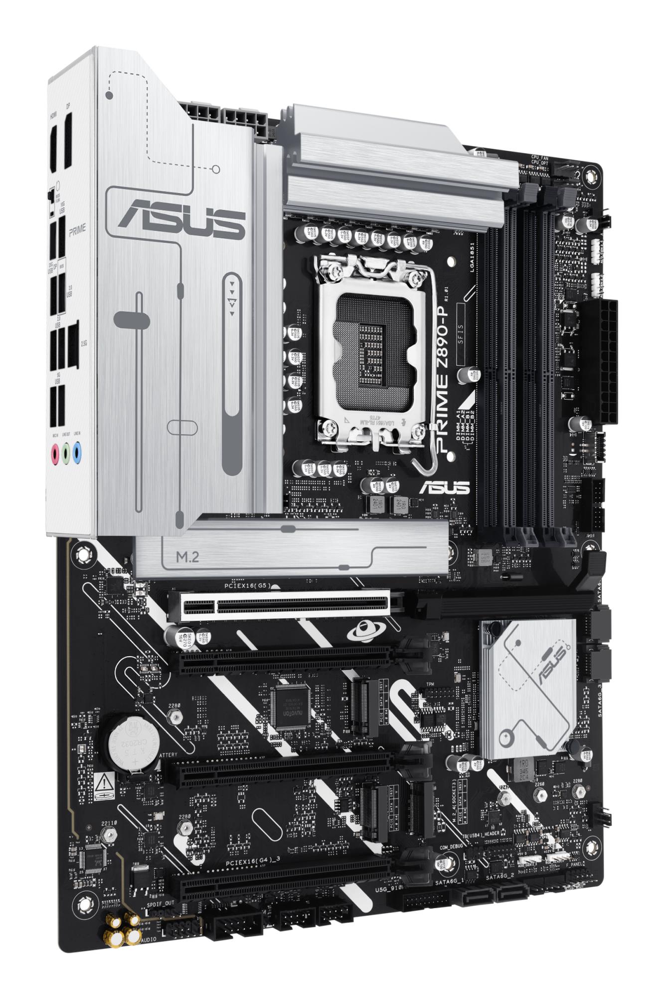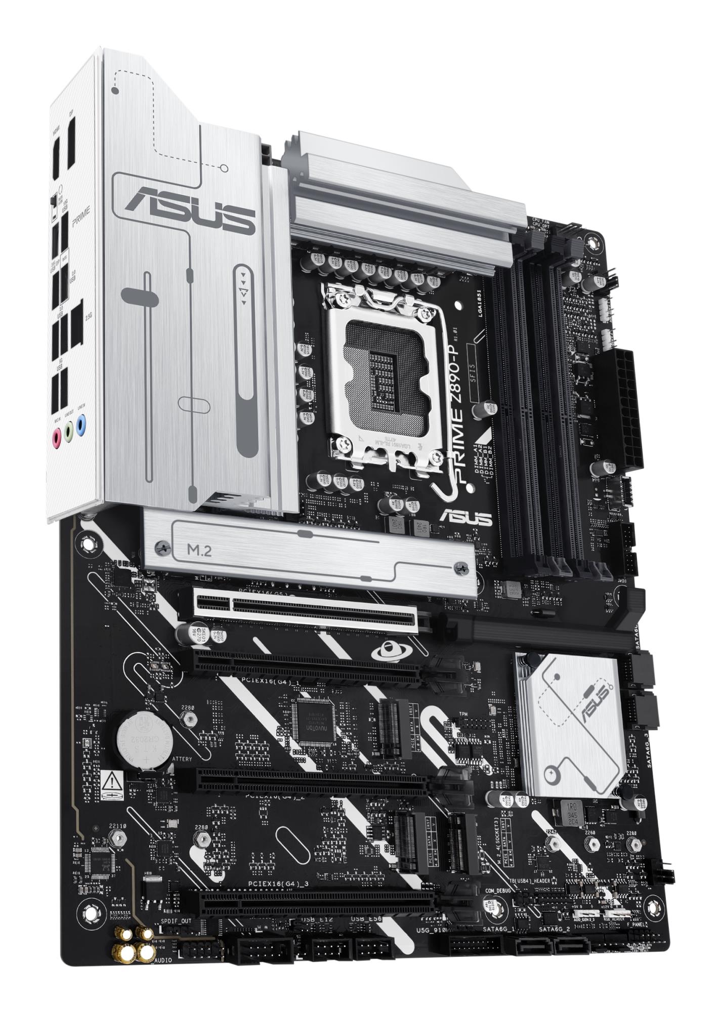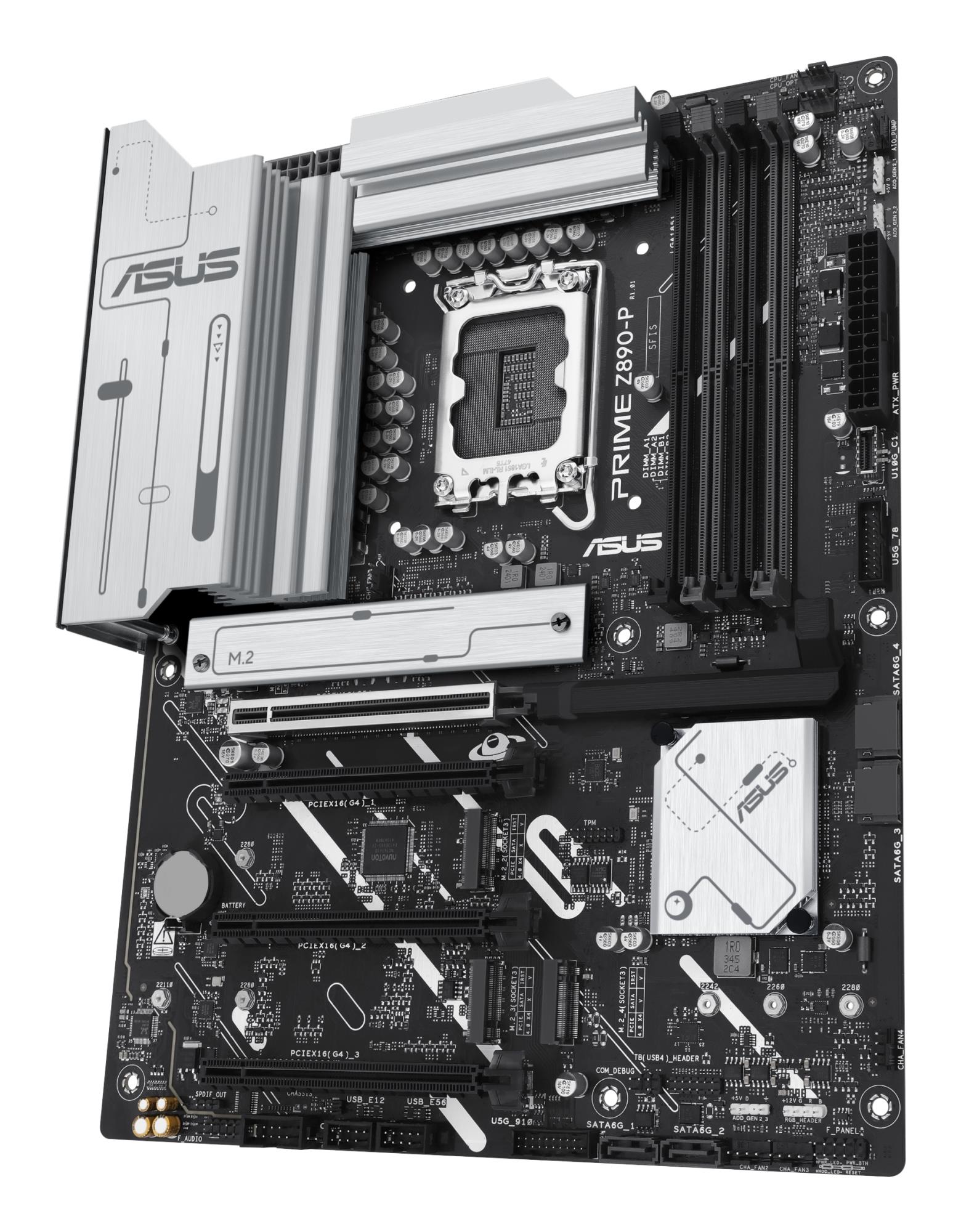 The PRIME Z890-P motherboard is engineered with multiple onboard heatsinks and an array of hybrid fan headers to help ensure your rig stays cool and stable under intense workloads.
